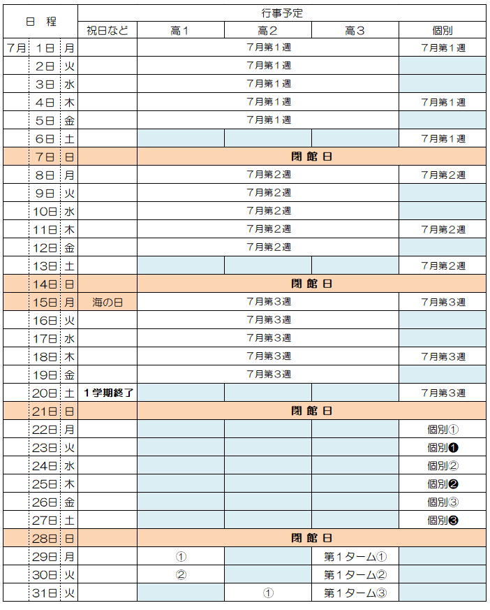 飛翔塾の7月の予定が決まりましたのでお知らせいたします。
