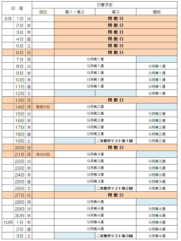 9月の予定