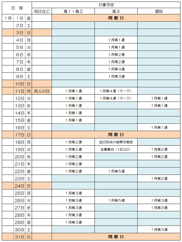 1月の予定