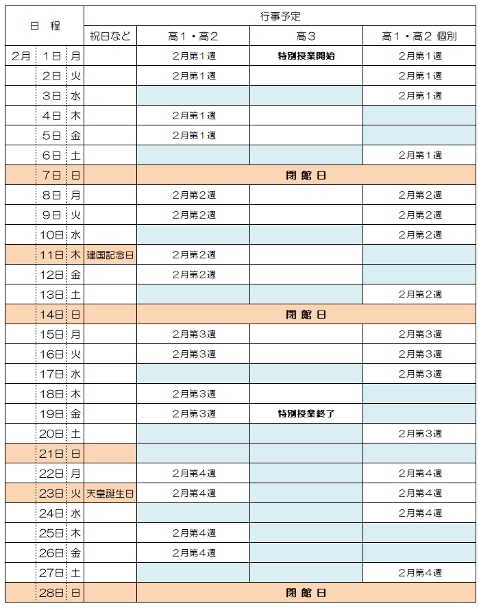 当初は校舎を開ける予定でしたが、休館日といたします。