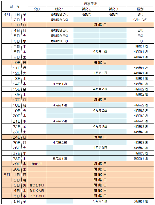 4月の予定
