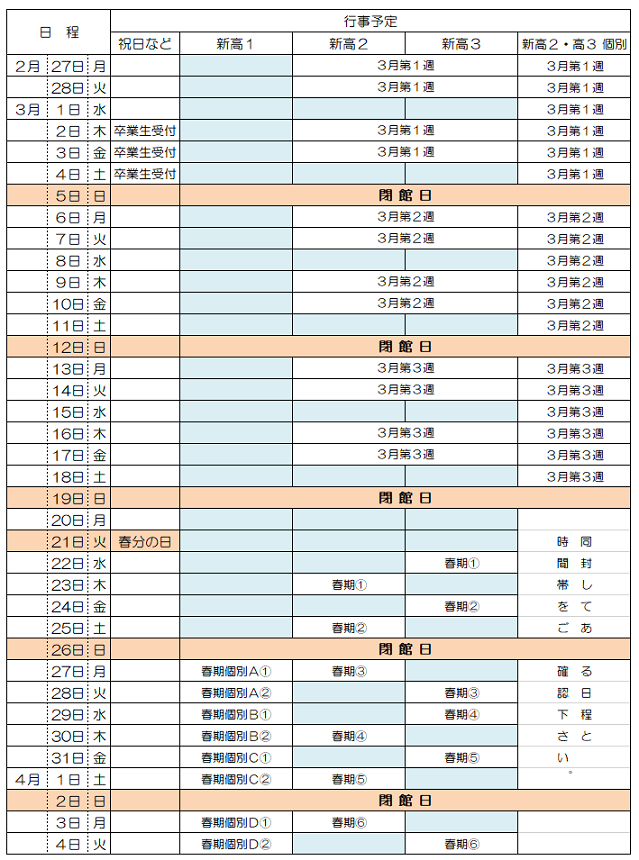 3月の予定が決まりましたのでお知らせいたします。