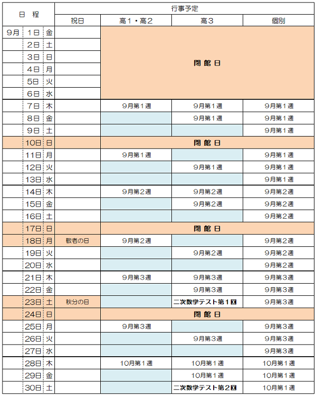 9月の予定