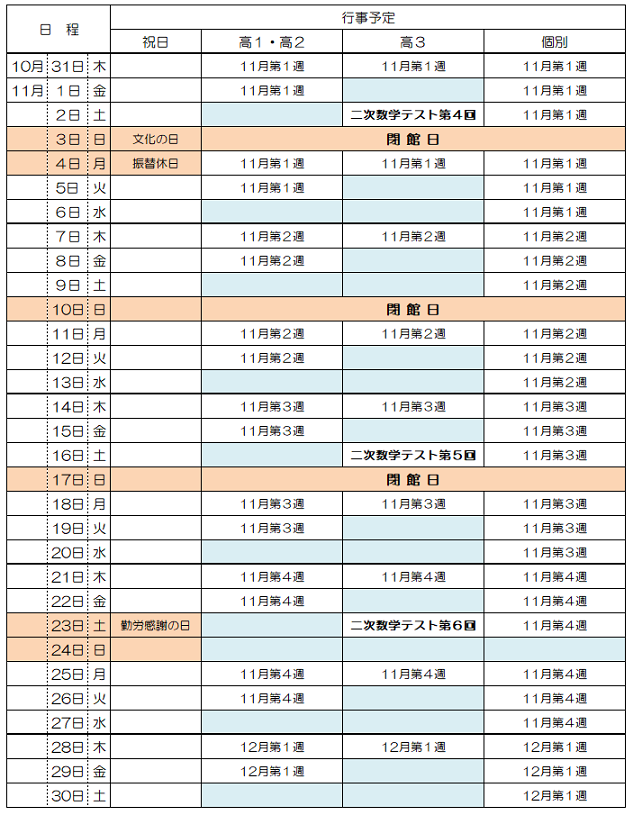 11月の予定
